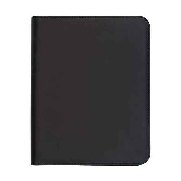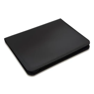 Elegancka teczka A4 wykonana z ekoskóry, zamykana na zamek. Zawiera notes, dwie małe kieszonki, elastyczny uchwyt na telefon oraz składany stojak do telefonu. Teczka posiada również miejsce na długopis.